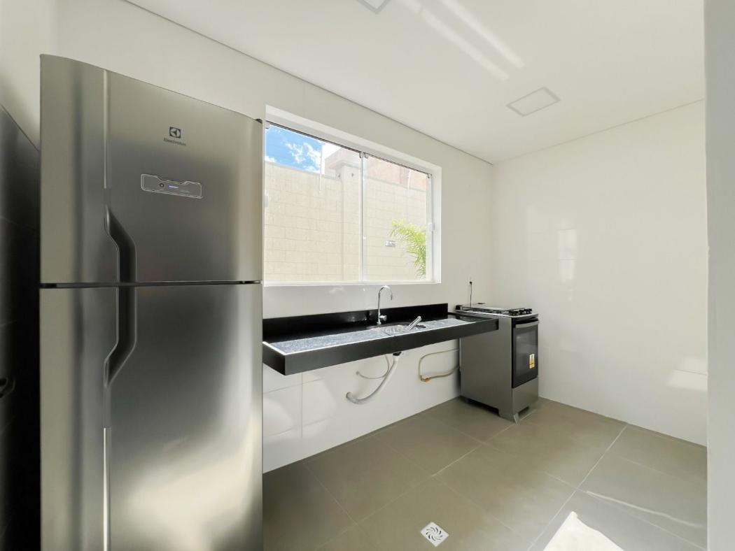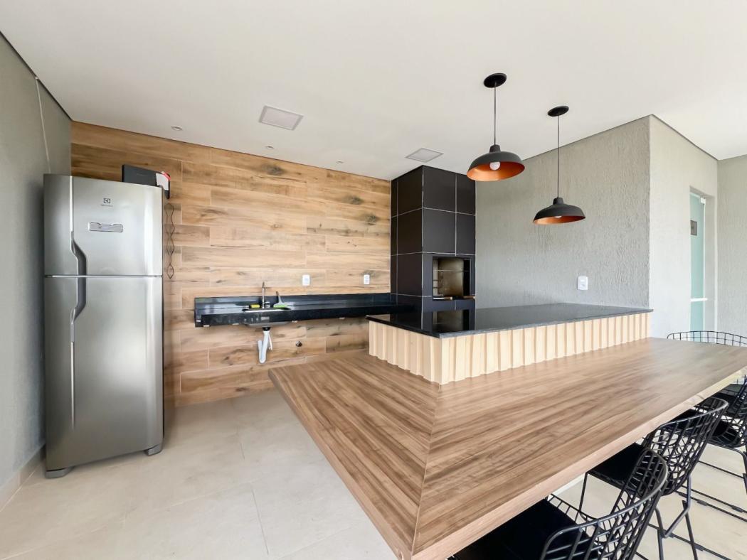 * Cozinha com planejados, cooktop e geladeira