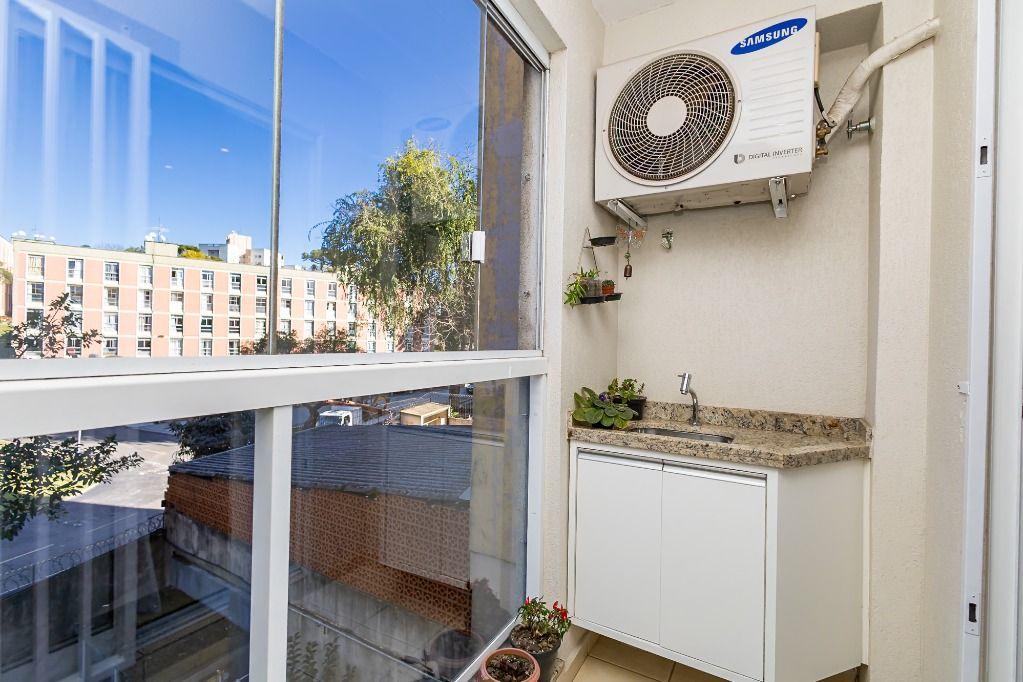 Temos aqui um apartamento muito bem conservado, com ótimos móveis planejados em todos os ambientes. São 02 dormitórios, 01 banheiro, sala ampla e que integra com sacada com churrasqueira. Fica ar-condicionado instalado na sala.