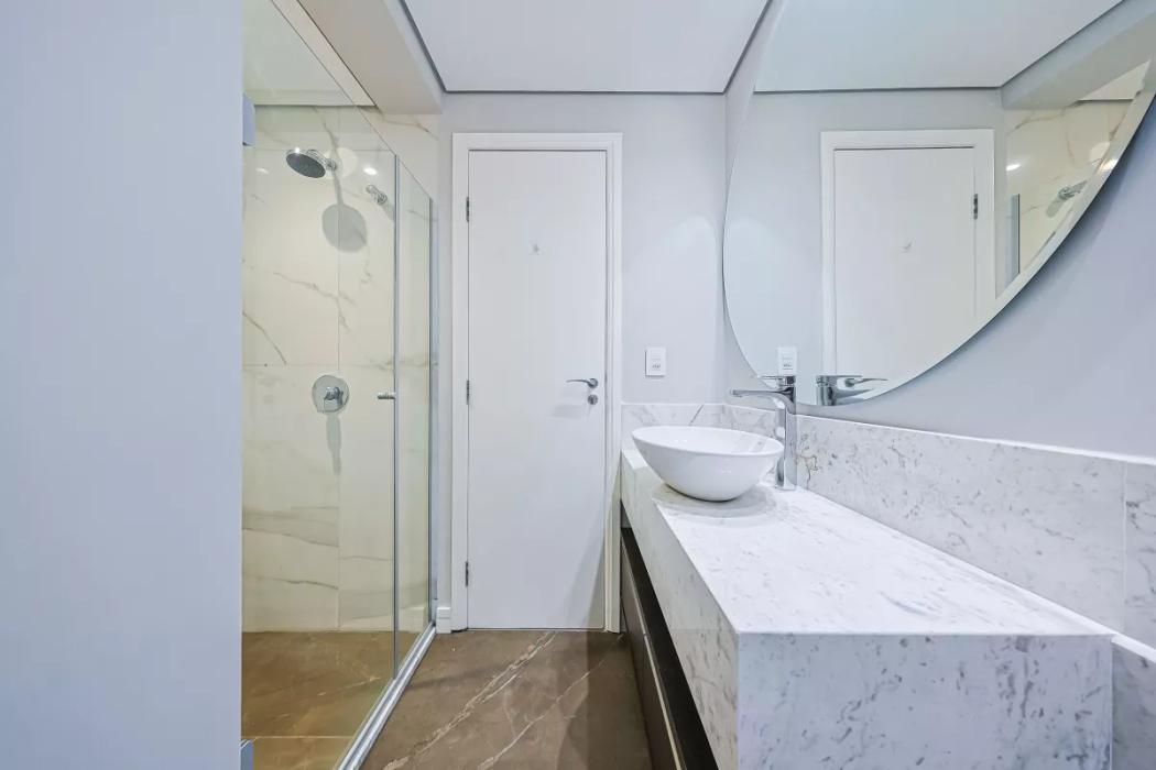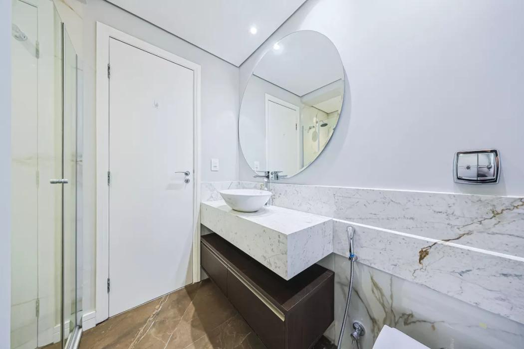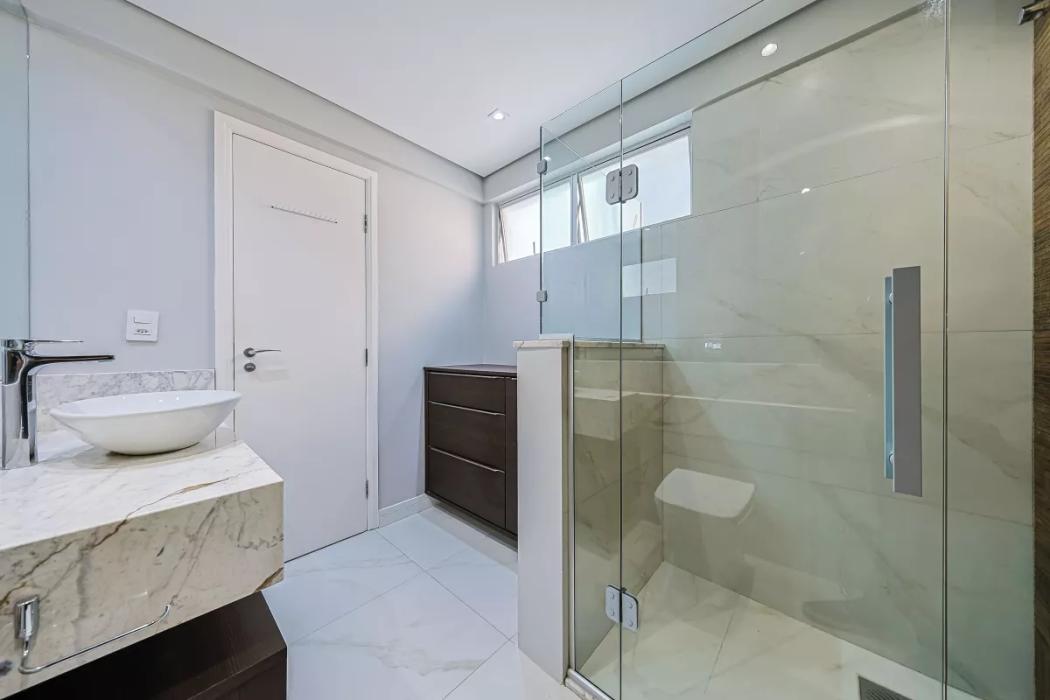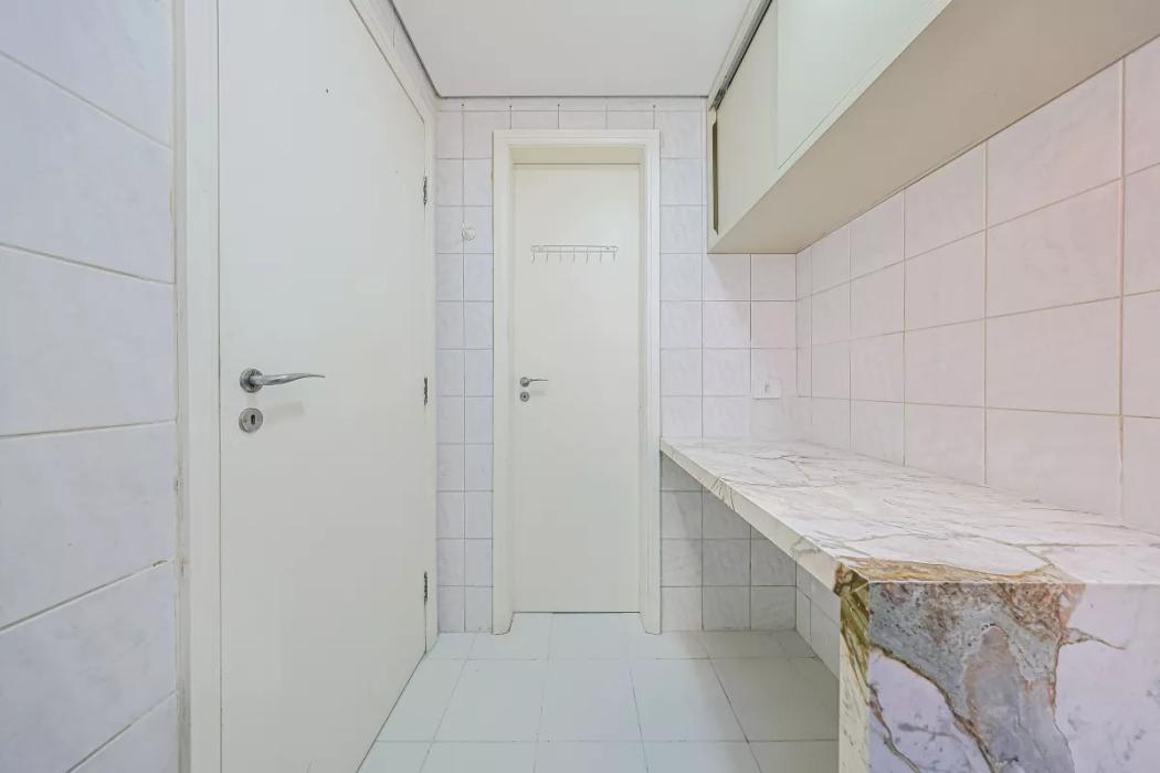 Apartamento todo reformado, espaçoso, possui sala de estar e sala de jantar, num ambiente integrado e aconchegante, com ar condicionado. Sacada com churrasqueira à carvão, 3 quartos sendo uma suíte, todos com armários, e ar condicionado. Banheiros finamente decorados com mármore branco Paraná Calacata premium (Michelângelo) com box blindex, chuveiro à gás, com armários planejados, e piso em porcelanato Portinari e metais da Docol. Cozinha e churrasqueira com acabamentos em quartzito Desert White que suporta temperaturas mais quentes, e resistente a manchas, blacksplash (mosaico), da linha metal da Porcelanosa, móveis planejados, fogão, lavanderia com armário planejado e banheiro completo de empregada. Piso vinílico de alta qualidade, importado da Casa Nova Decorações. Uma vaga de garagem no subsolo 2, número 69. Posição: Fundos.