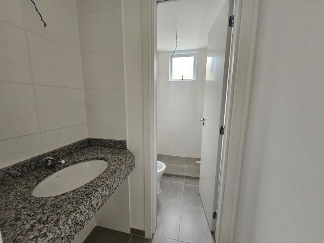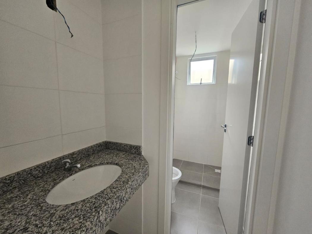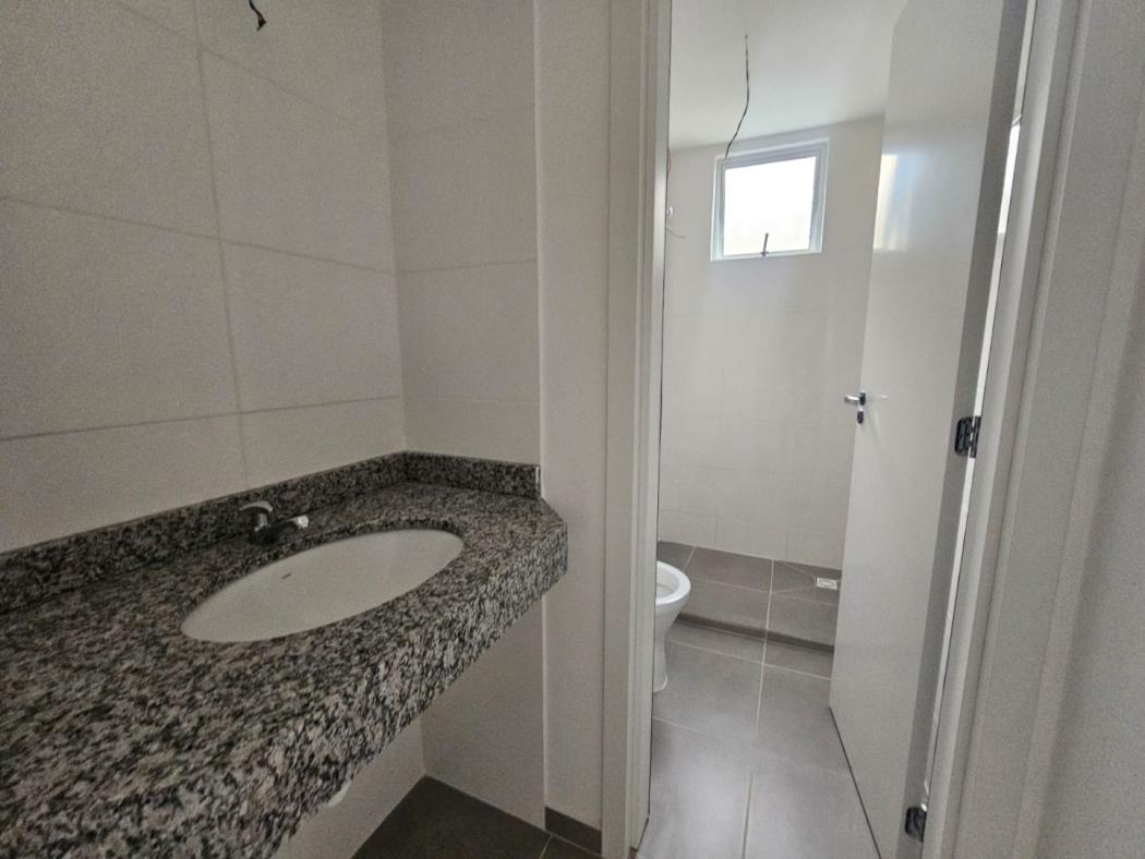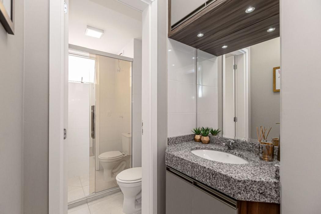 Banheiro social com ventilação natural, proporcionando um ambiente mais agradável.
