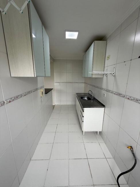 A cozinha com armários planejados, pia e aquecedor, oferece praticidade para o dia a dia.