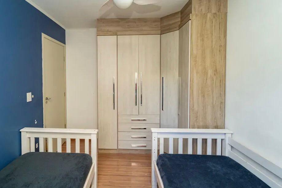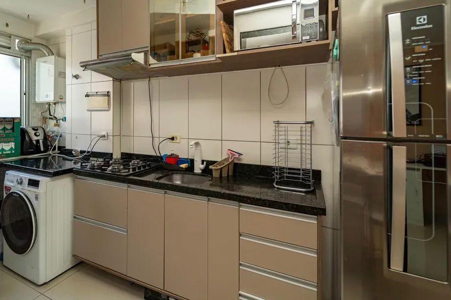 Imóvel com metragem útil de 55m², boa ventilação, semi-mobiliado e 1 vaga de garagem coberta, com 2 dormitórios, 2 banheiros, 1 cozinha, 2 salas, móveis planejados na cozinha, quartos, banheiro e lavanderia.