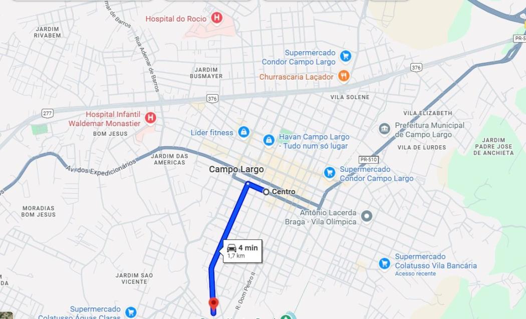Apenas 4 minutinhos do Centro de Campo Largo!