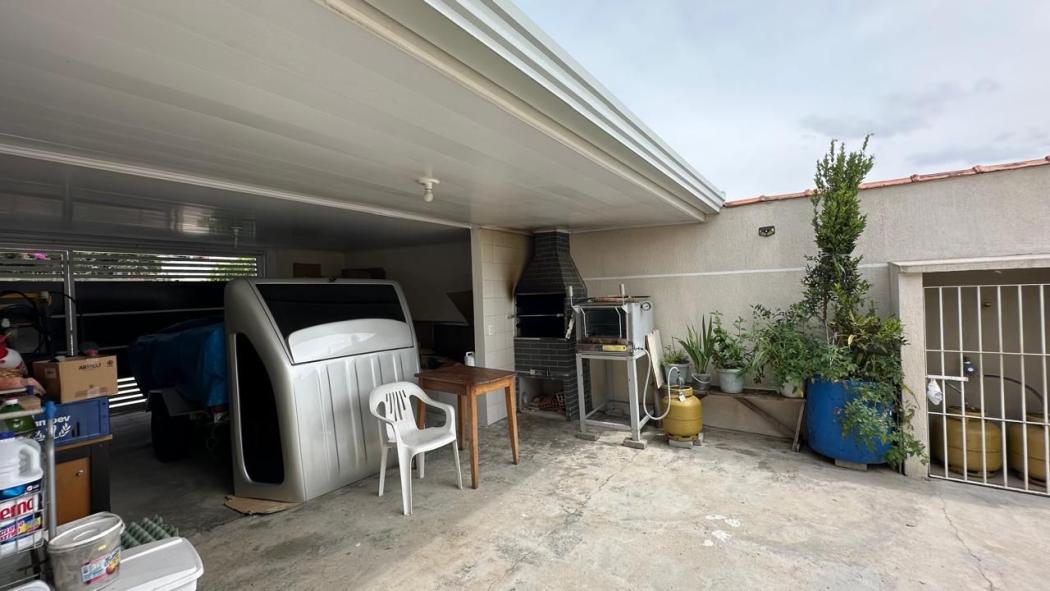 O imóvel oferece amplo quintal frontal e nos fundos, possui duas entradas independentes para veículos, ambas com portão eletrônico, totalizando vagas para até 6 carros, sendo 3 cobertas.