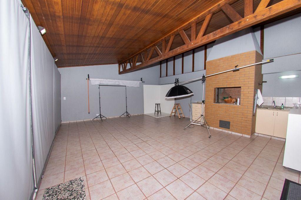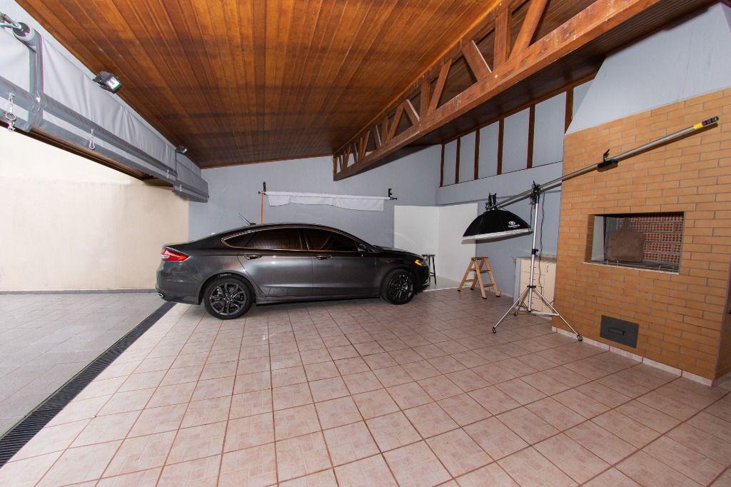 Nos fundos tem um espaço de garagem coberta para 03 veículos, churrasqueira, 01 quarto com banheiro, espaço para depósito e canil.
