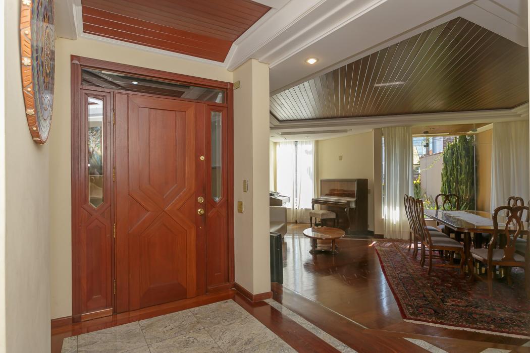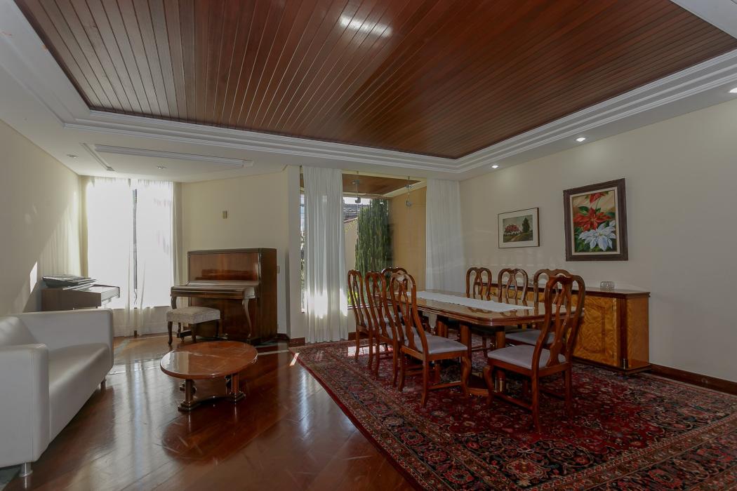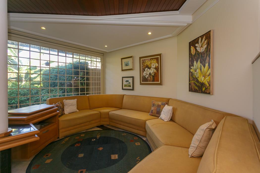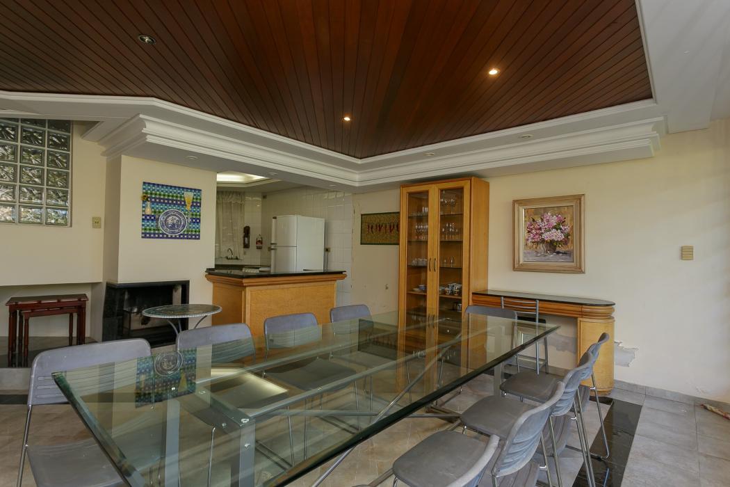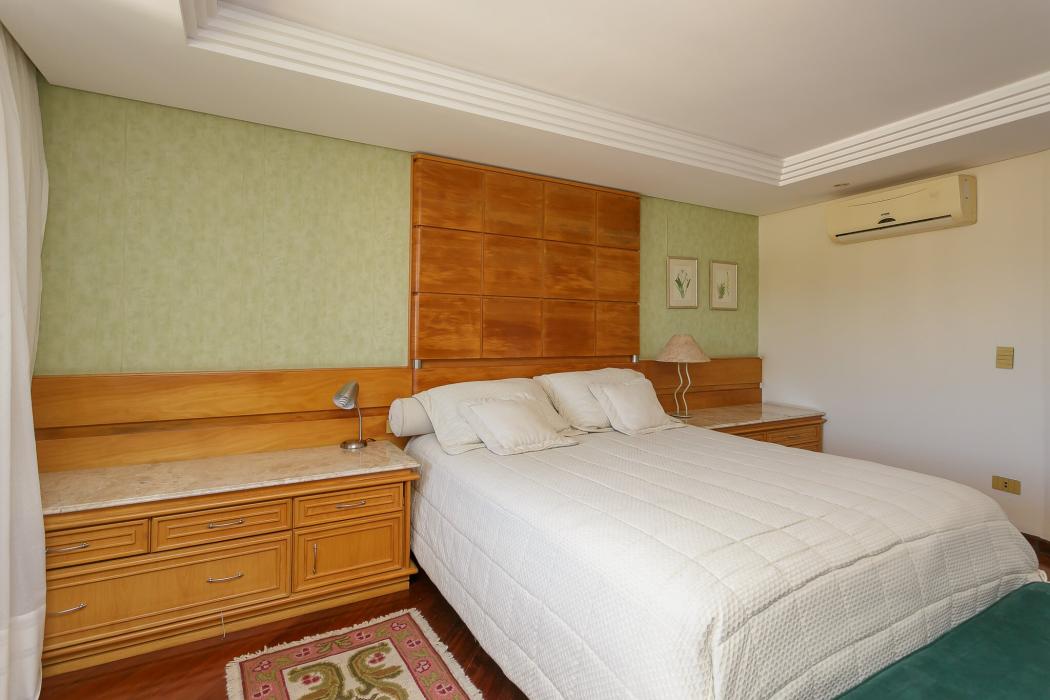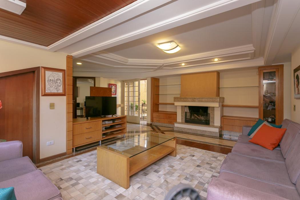 Com 603 m2, três salas com lareiras, adega, copa, cozinha, suíte com 02 closet, 05 quartos sendo 03 suítes, ático, salão de festas com churrasqueira, terraços, jardim, suíte de empregada, oficina, garagem para 06 carros.