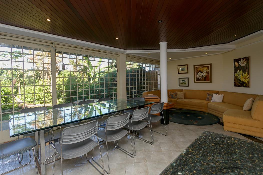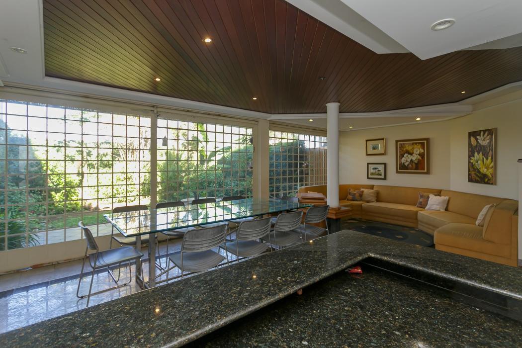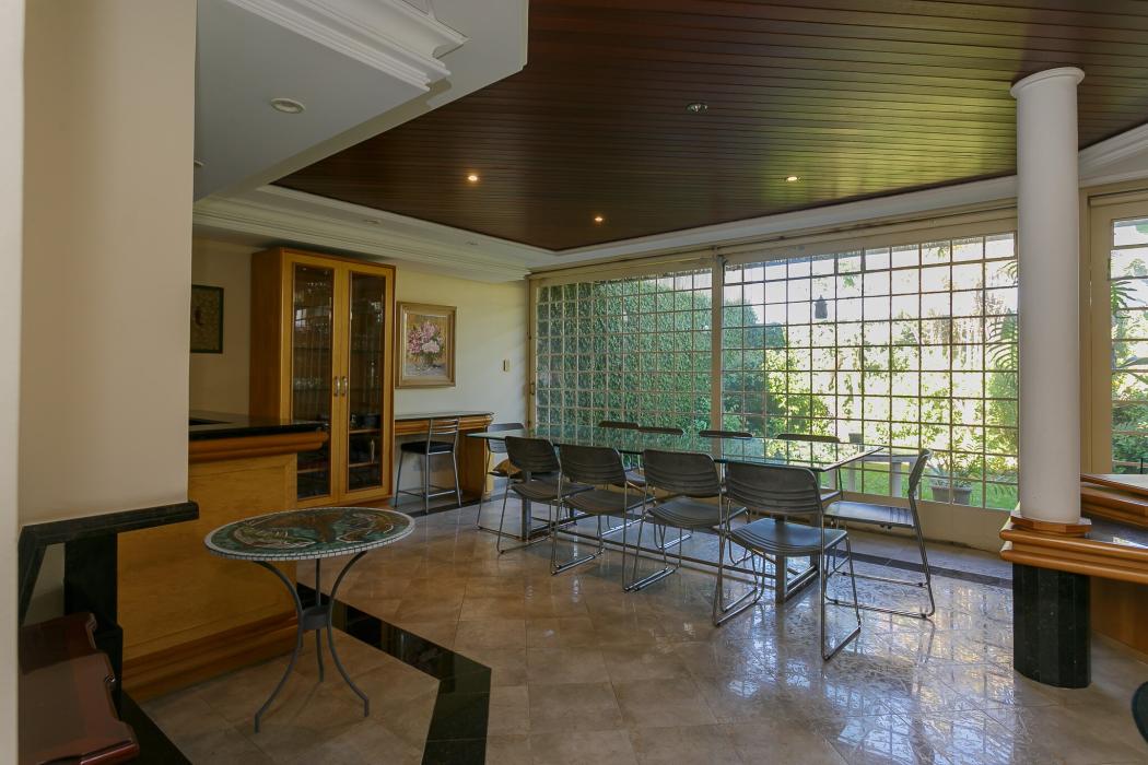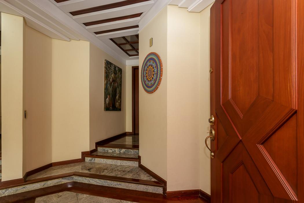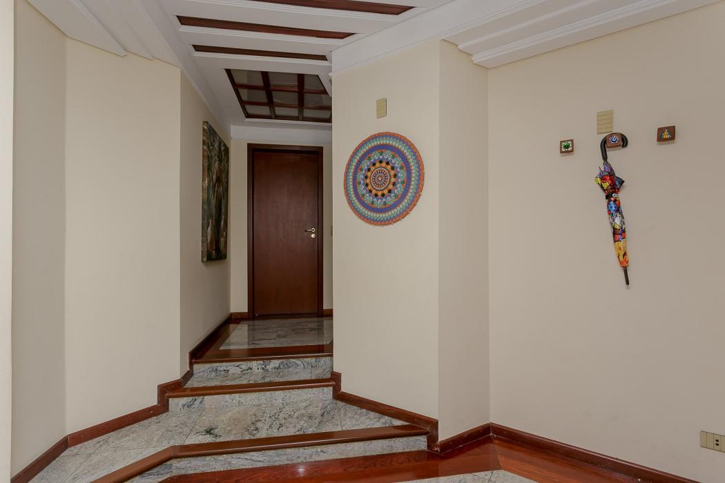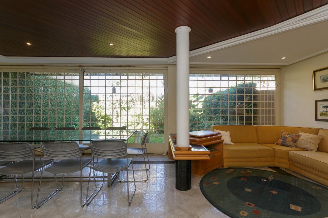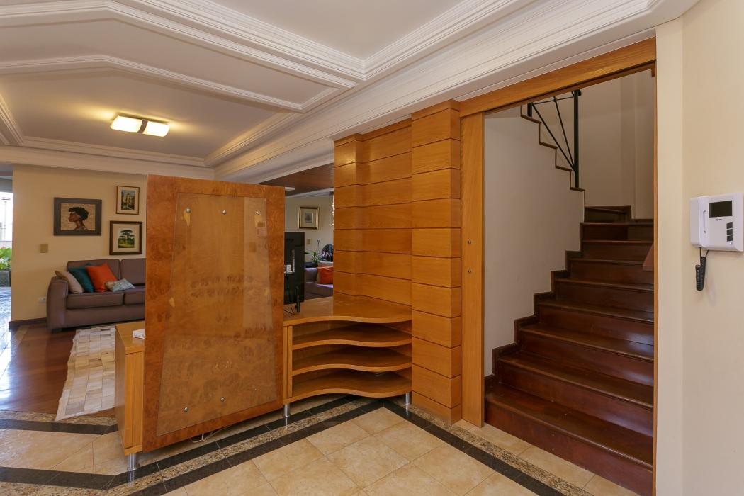 Com 603 m2, três salas com lareiras, adega, copa, cozinha, suíte com 02 closet, 05 quartos sendo 03 suítes, ático, salão de festas com churrasqueira, terraços, jardim, suíte de empregada, oficina, garagem para 06 carros.