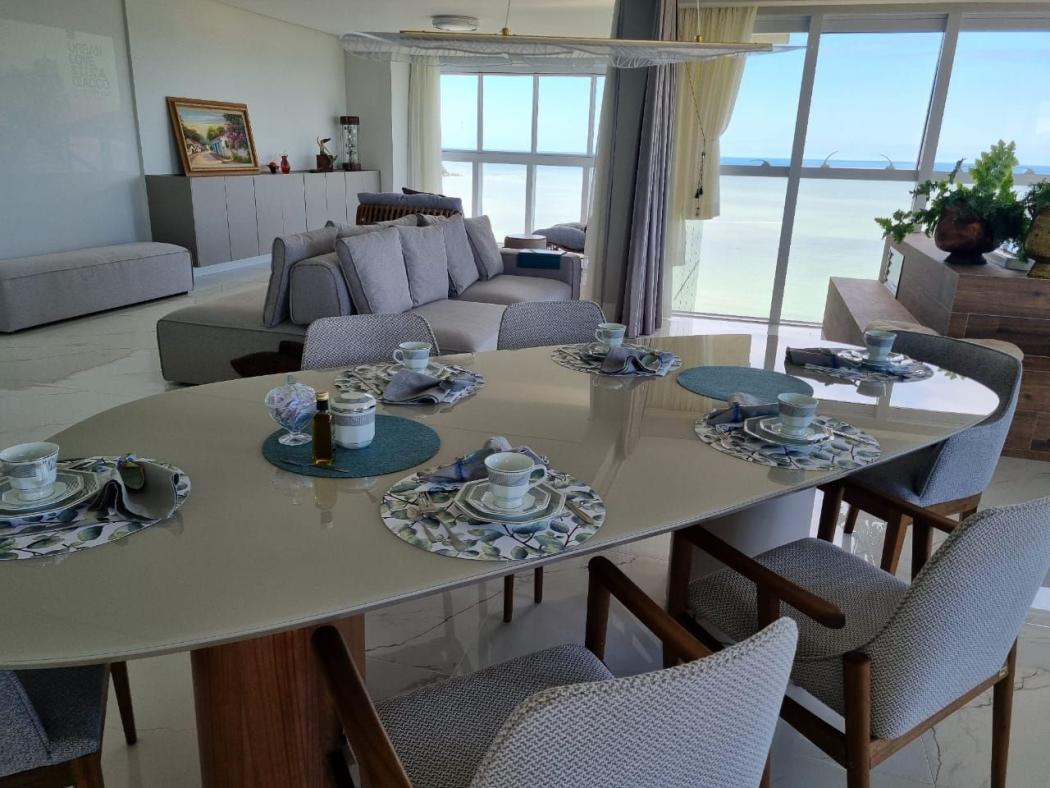 UMA COBERTURA DUPLEX AMPLA, MOBILIADA E BEM DISTRÍBUIDA, COM LUMINÁRIAS, CORTINAS E PERSIANAS, AR CONDICIONADO QUENTE E FRIO, QUE VOCÊ VAI FAZER QUESTÃO DE TRAZER TODOS OS AMIGOS E FAMILIARES PARA RELAXAR NA PRAIA, POIS VAI PODER RECEPCIONAR TODOS COM MUITO CONFORTO, EXCLUSUVIDADE, ELEGÊNCIA E VISTA ETERNA.