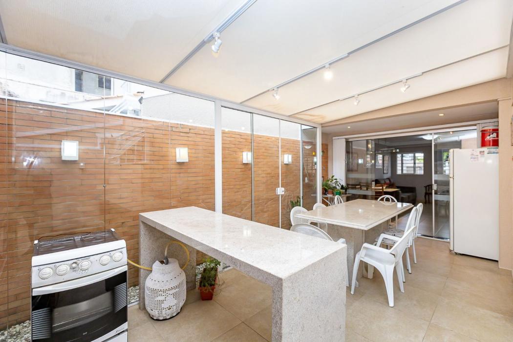 *Excelente espaço gourmet com churrasqueira, pia e balcão em granito, uma segunda cozinha e teto em vidro integrando com a sala;
