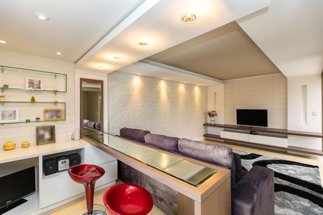 * Maravilhoso espaço de convivência como um cinema privativo, com sancas em gesso e iluminação, com moveis planejados (rack, painel de tv, balcão);