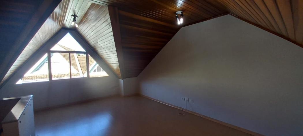 Ático amplo para 2 ambientes, com lareira e piso laminado;
