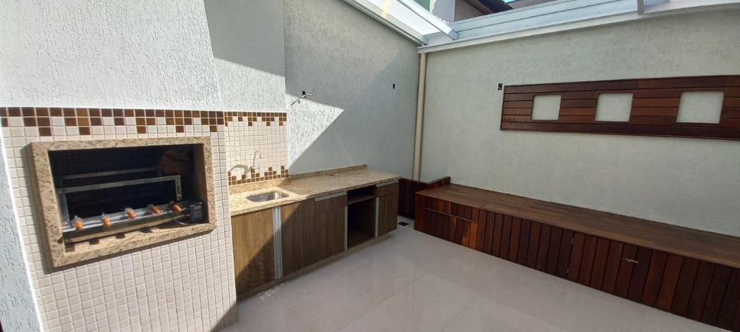 Churrasqueira espeto elétrico, pia tampo em granito com armário;