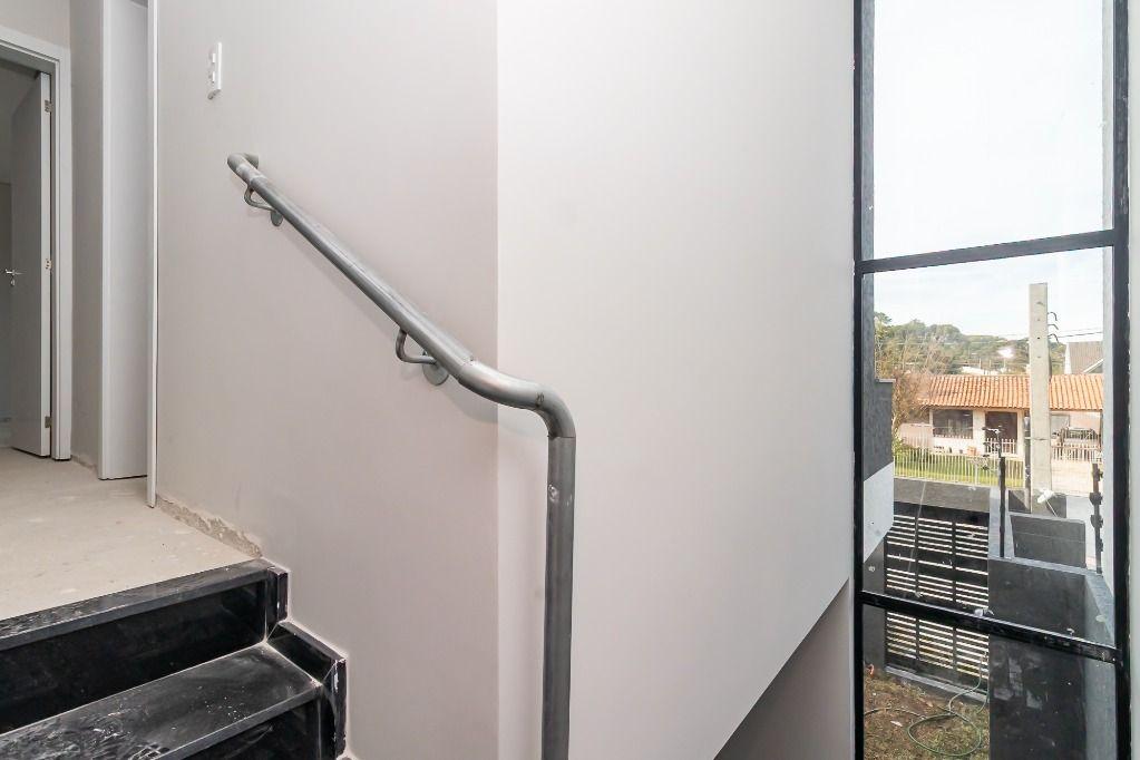 Parede envidraçada frontal, proporcionando mais luminosidade na escada de acesso ao piso superior