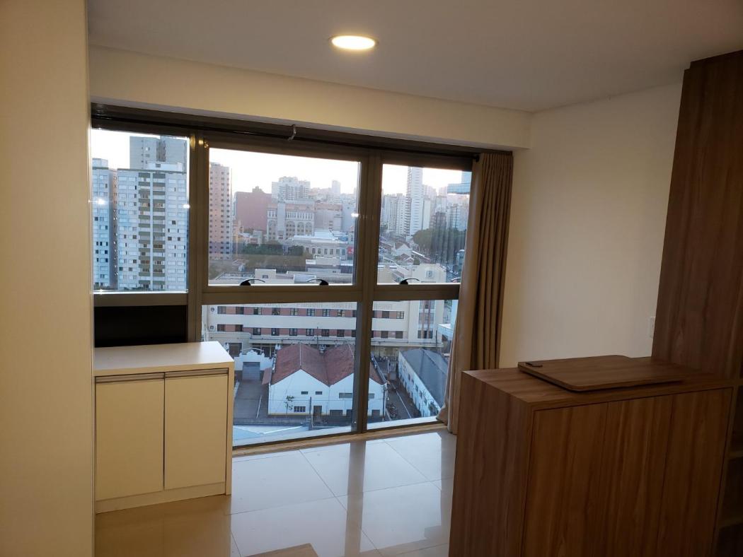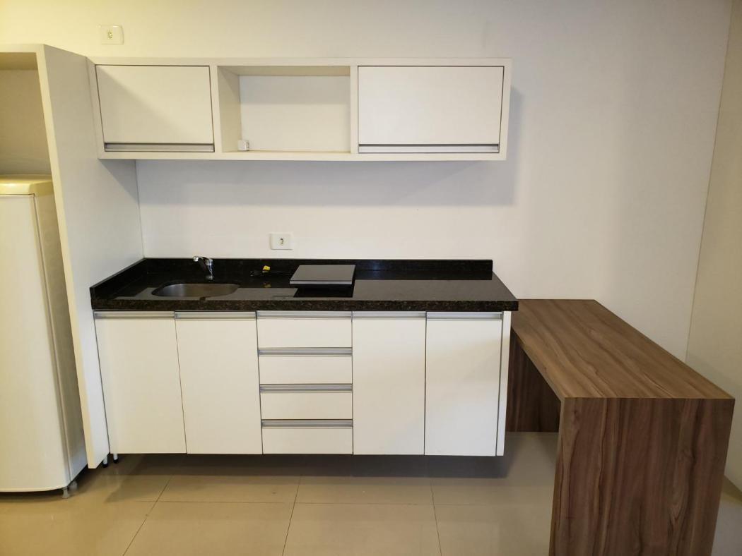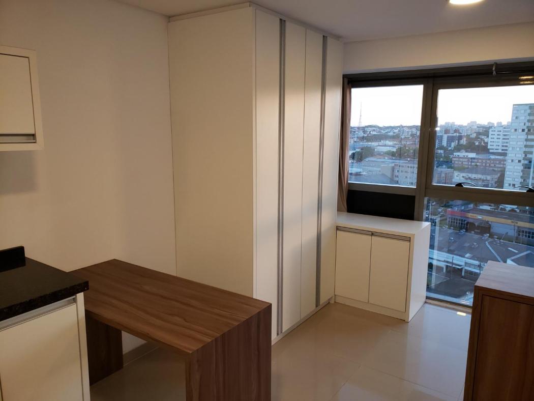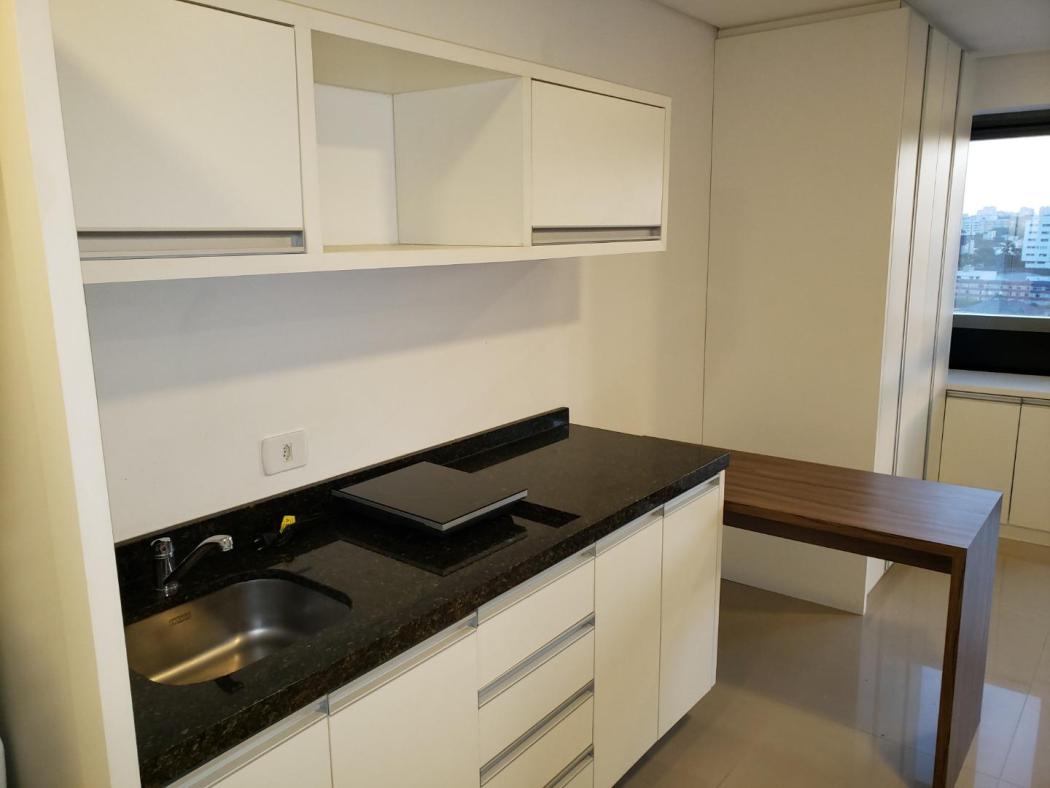 Apartamento Studio para venda no Edificio 7Th Avenue no Centro de Curitiba, ao lado da Rodoferroviária. Conta com cozinha mobiliada, contém fogão elétrico, refrigerador, tanque, armários no quarto, mesa para computador, espaço para sala com vista maravilhosa, painel para tv, mesa de passar, água aquecida.