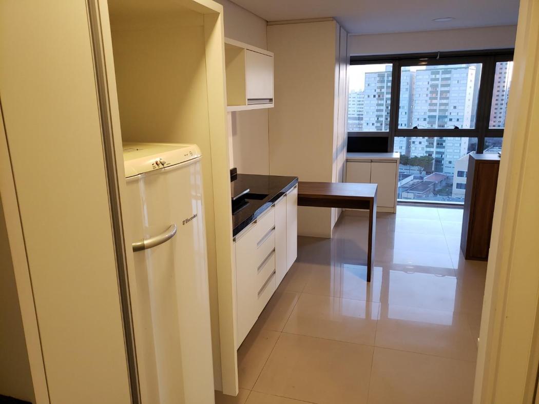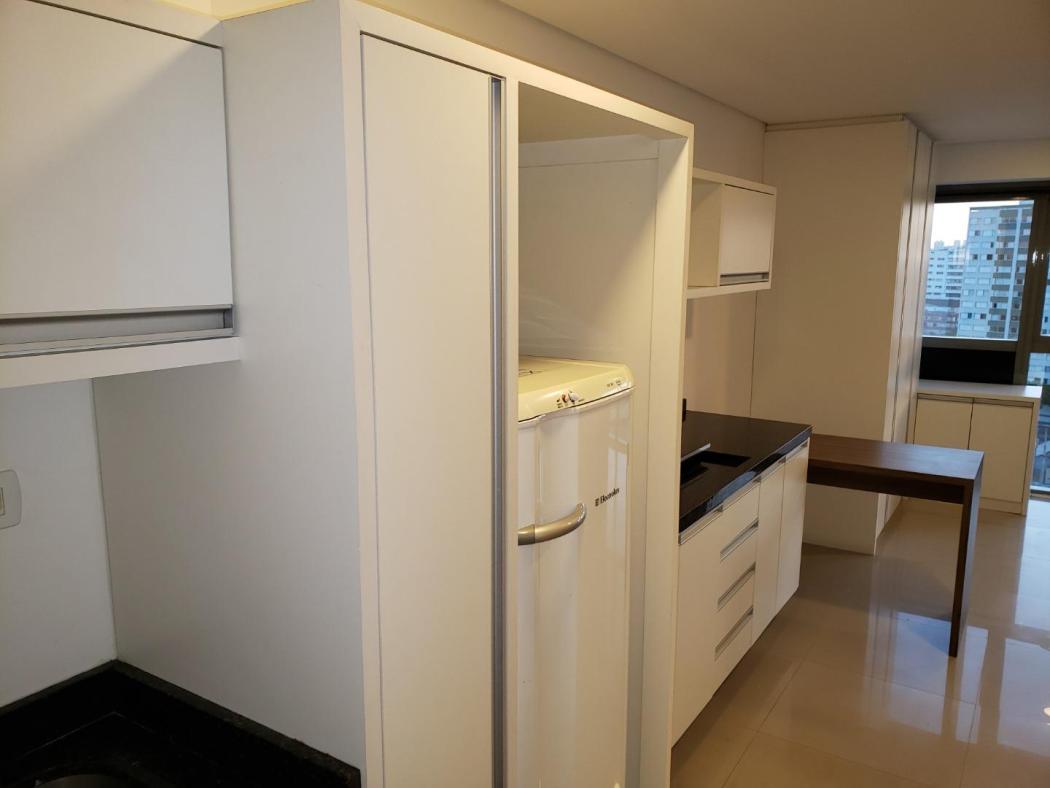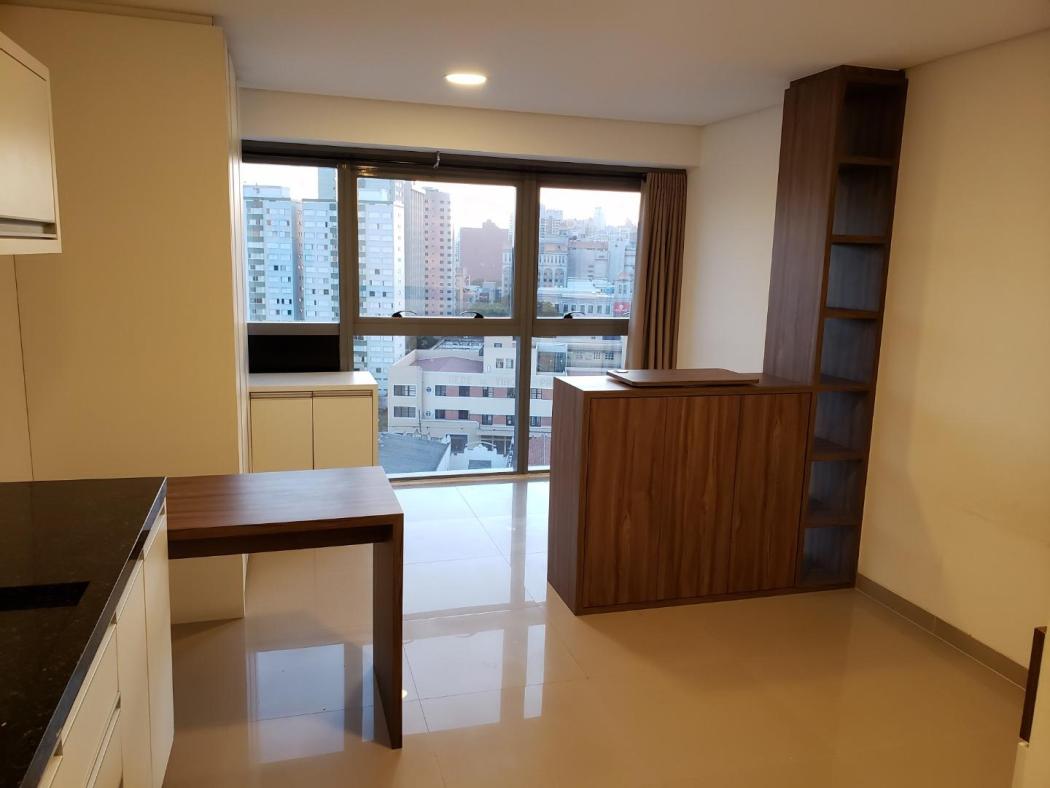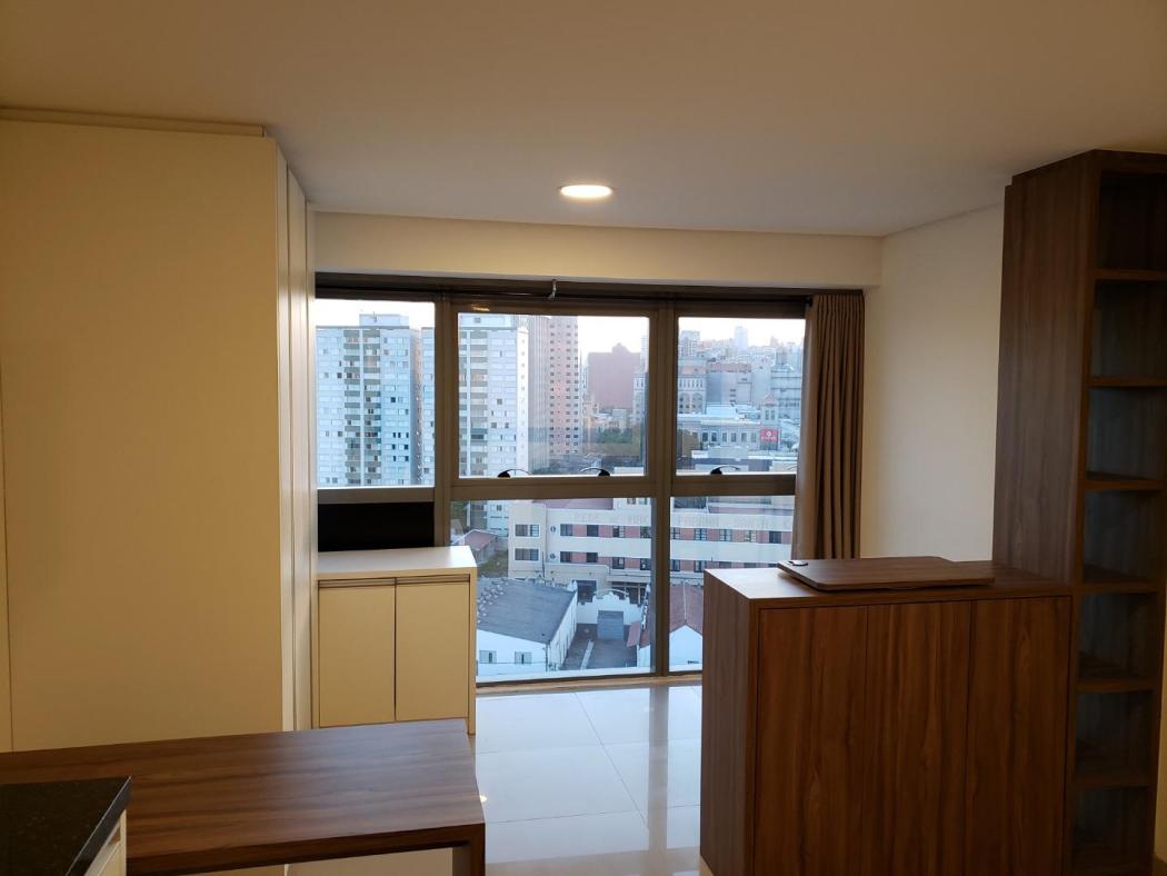 Apartamento Studio para venda no Edificio 7Th Avenue no Centro de Curitiba, ao lado da Rodoferroviária. Conta com cozinha mobiliada, contém fogão elétrico, refrigerador, tanque, armários no quarto, mesa para computador, espaço para sala com vista maravilhosa, painel para tv, mesa de passar, água aquecida.
